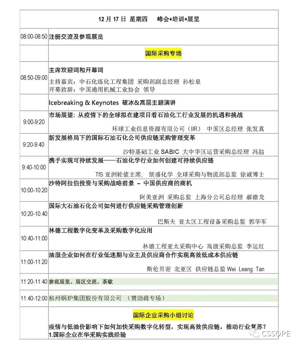 日程出炉:阿美、SABIC、挪威国油、巴斯夫、朗盛、三大油、万华、恒逸、福陆、林德、三星、派特法、斯伦贝谢、DESCON、力拓、拉森特博洛、天辰、惠生、巨涛等众多采购大咖云集CSSOPE采购会