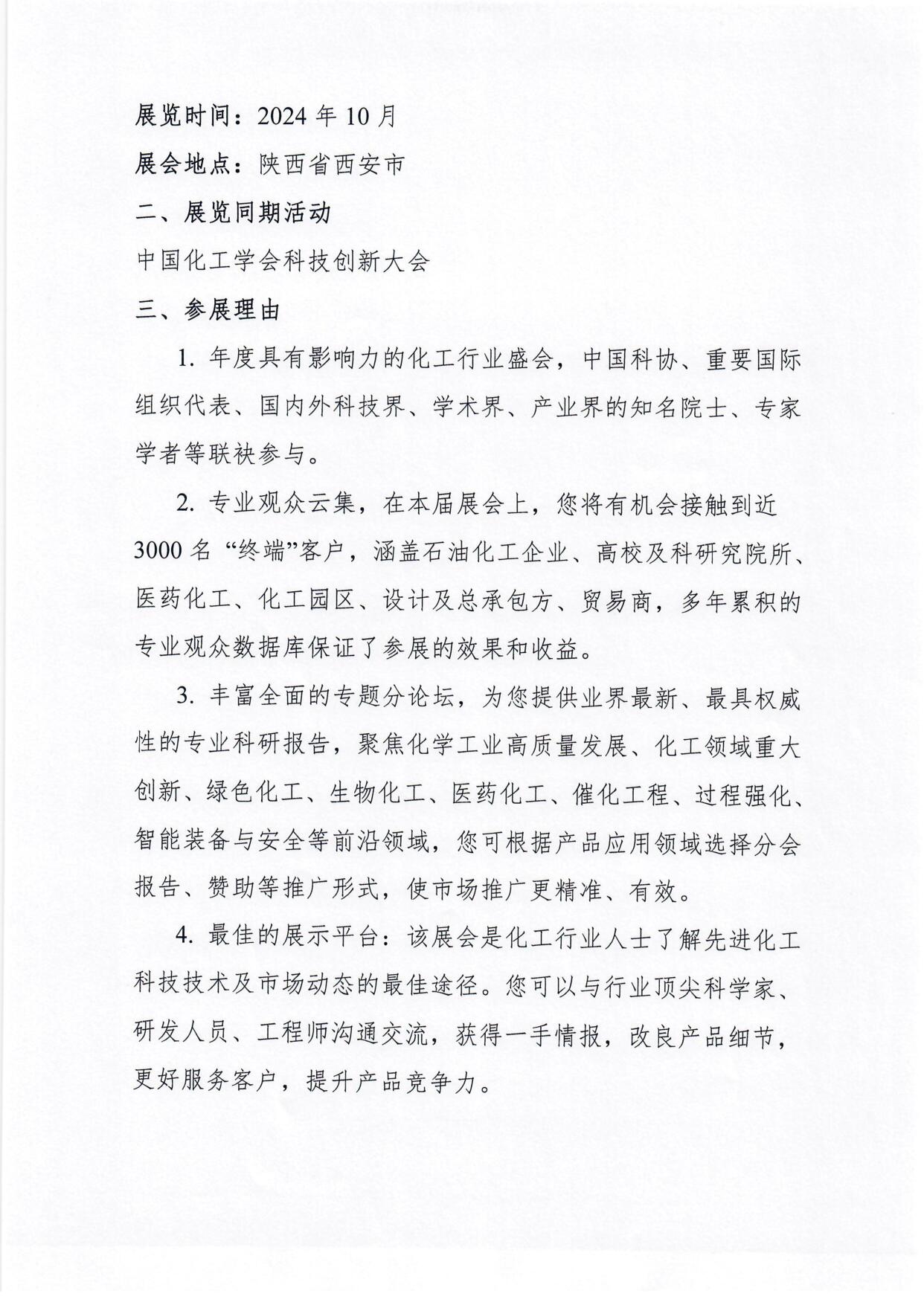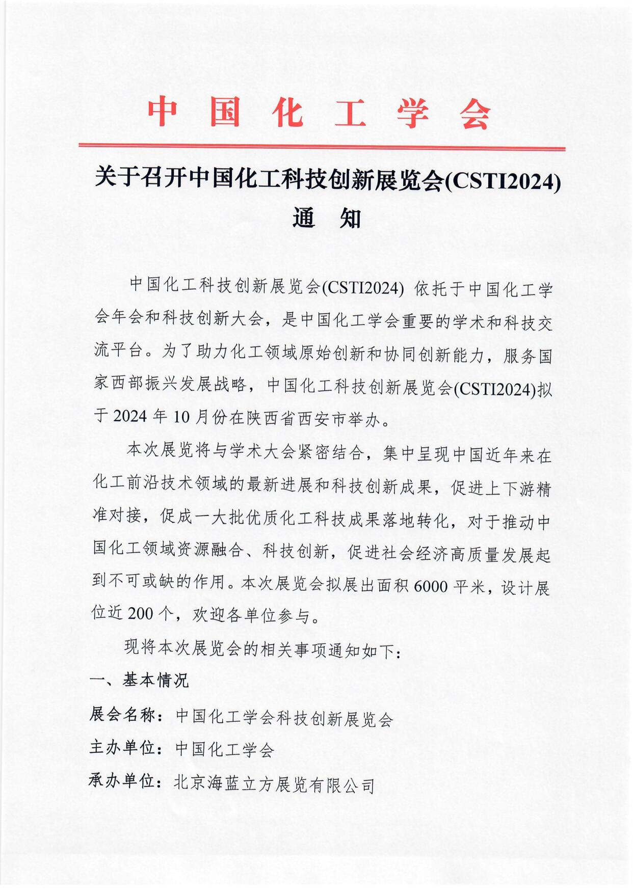 您现在的位置是:首页 > 会议活动网站首页会议活动 中国化工学会关于召开中国化工科技创新展览会(CSTI 2024)的通知 管理员 2024-01-17 3361 次阅读 TAG: 无标签 上一篇:埃及采购专场一中国石油化工装备采购国际峰会 下一篇:工程巨头CCC确认参与CSSOPE埃及采购专场 相关文章 特别推荐 【火爆出炉】CSSOPE 2025 全球采购对接会排期表 阅读 全球氢能项目大汇总,快来点击索要 阅读 随机推荐 石油和天然气下一步将走向何方? 中石油经研院《2023年油气行业发展报告》重磅发布! 2024-03-01 10:04:39 华陆公司尼日利亚大颗粒尿素项目开车成功 2022-03-25 20:10:33 卡塔尔能源与埃克森美孚成功竞标加拿大深水区块 2022-11-07 15:52:19 安庆石化开四剂“时效良方”践行“马上就办” 2019-01-08 12:05:42 点击排行 6亿美元!中石化油服签约乌干达油气工程项目合同 意大利塞班( SAIPEM)油气项目及采购计划:CSSOPE 为你解读 2019-03-14 15:21:04 集团公司召开2019年HSSE工作视频会议 2019-01-04 18:12:57 石油党员党建信息化平台交纳党费上亿元 2019-01-11 16:33:49 中国石油2022年集中采购招标公告 2022-02-11 20:43:22 标签 会议 中国石化新闻网 中国石油新闻中心 转载 原创 关注我们