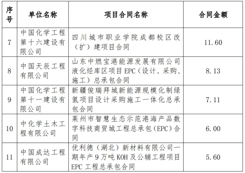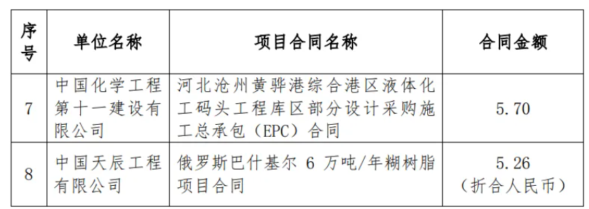 该项目建设内容为30万吨/年氯乙烯(VCM)主装置及配套辅助设施,建设单位为中国成达工程有限公司,合同金额7.54亿元。
