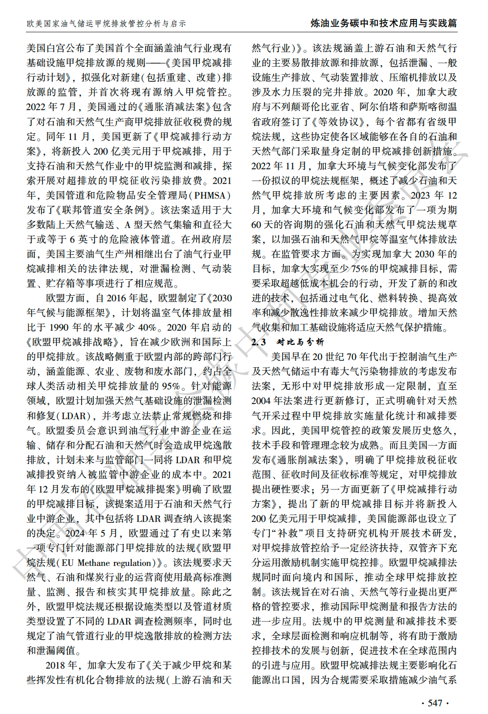 欧美国家油气储运甲烷排放管控分析与启示文/田望 李晓枫 任磊 王梓琪 杨传明国家石油天然气管网集团有限公司科学技术研究总院分公司国...