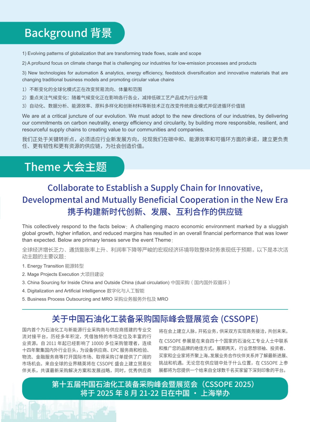 第十五届中国石油化工装备采购国际峰会暨展览会(CSSOPE 2025)即将于2025 年 8 月 21 - 22 日在上海跨国采购中心震撼启幕!