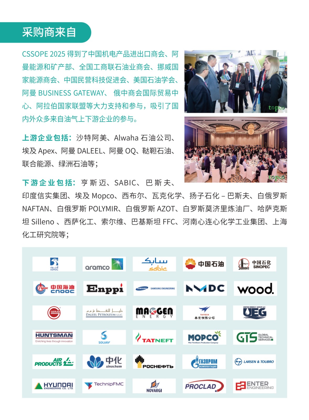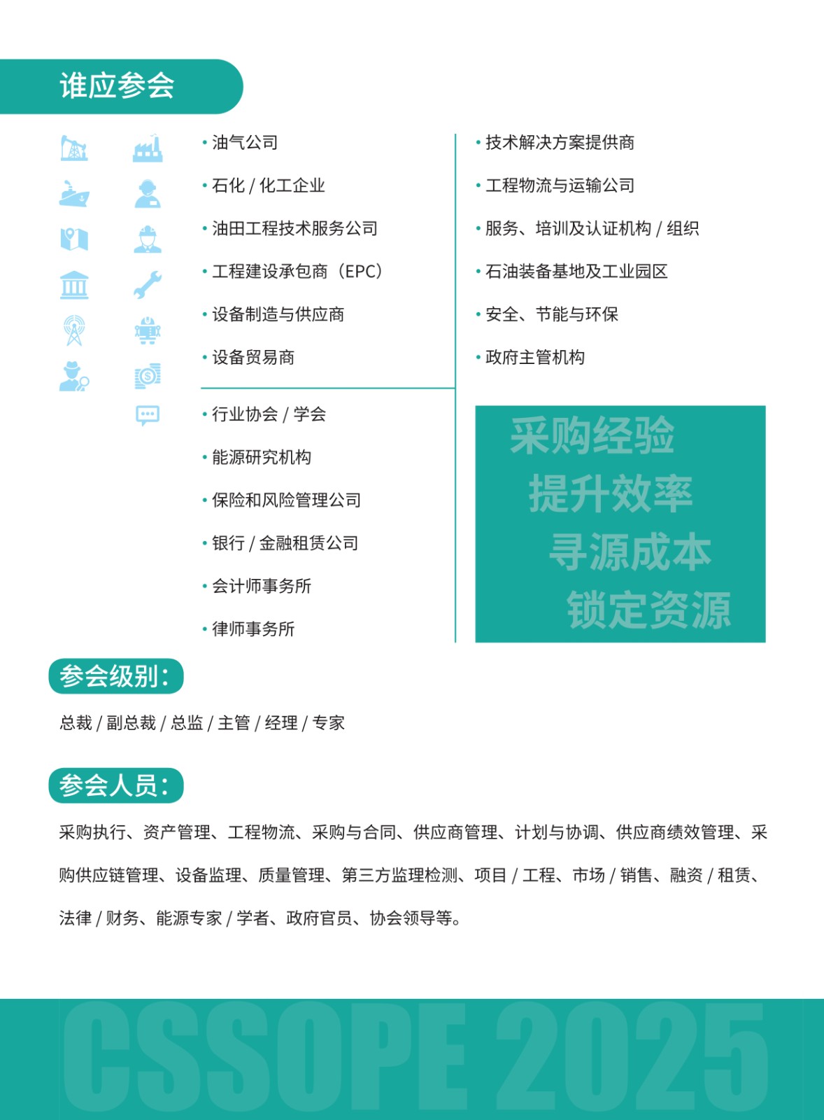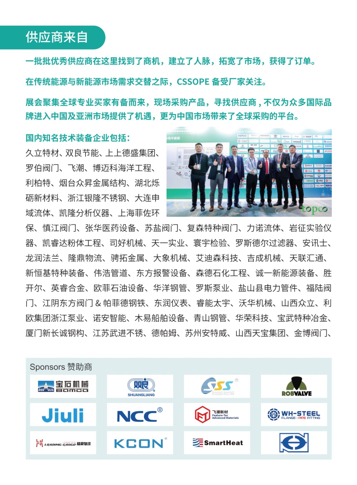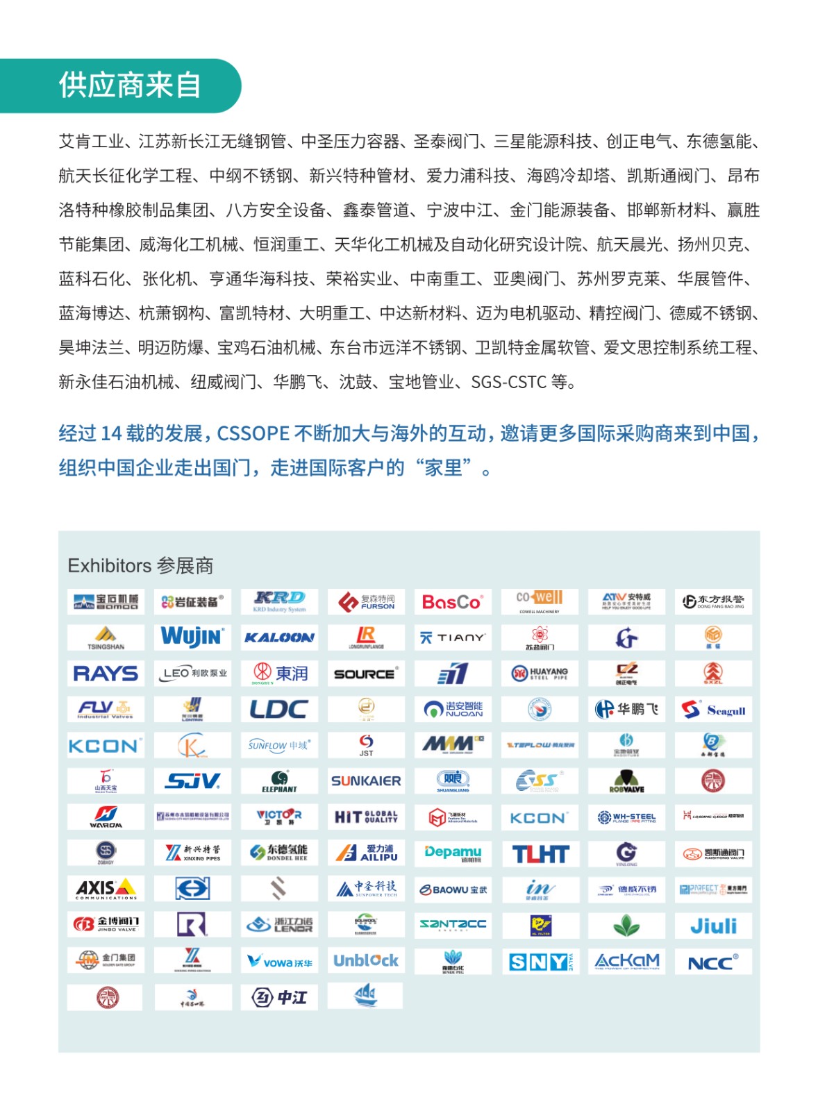 CSSOPE聚焦油气上下游产业供应链,是供应商开发、采购商寻源、项目合作的专业平台。高质量的会议内容、优秀的供应商和服务商、知名的采购商和贸易商,确保了与会者高效的沟通和高质量的收益。自创办以来,深受行业供应链系统内专业人员的青睐,得到众多专家学者的支持,广受技术设备厂家的欢迎和参与,服务了来自全球50多个国家和地区,近10000名代表。