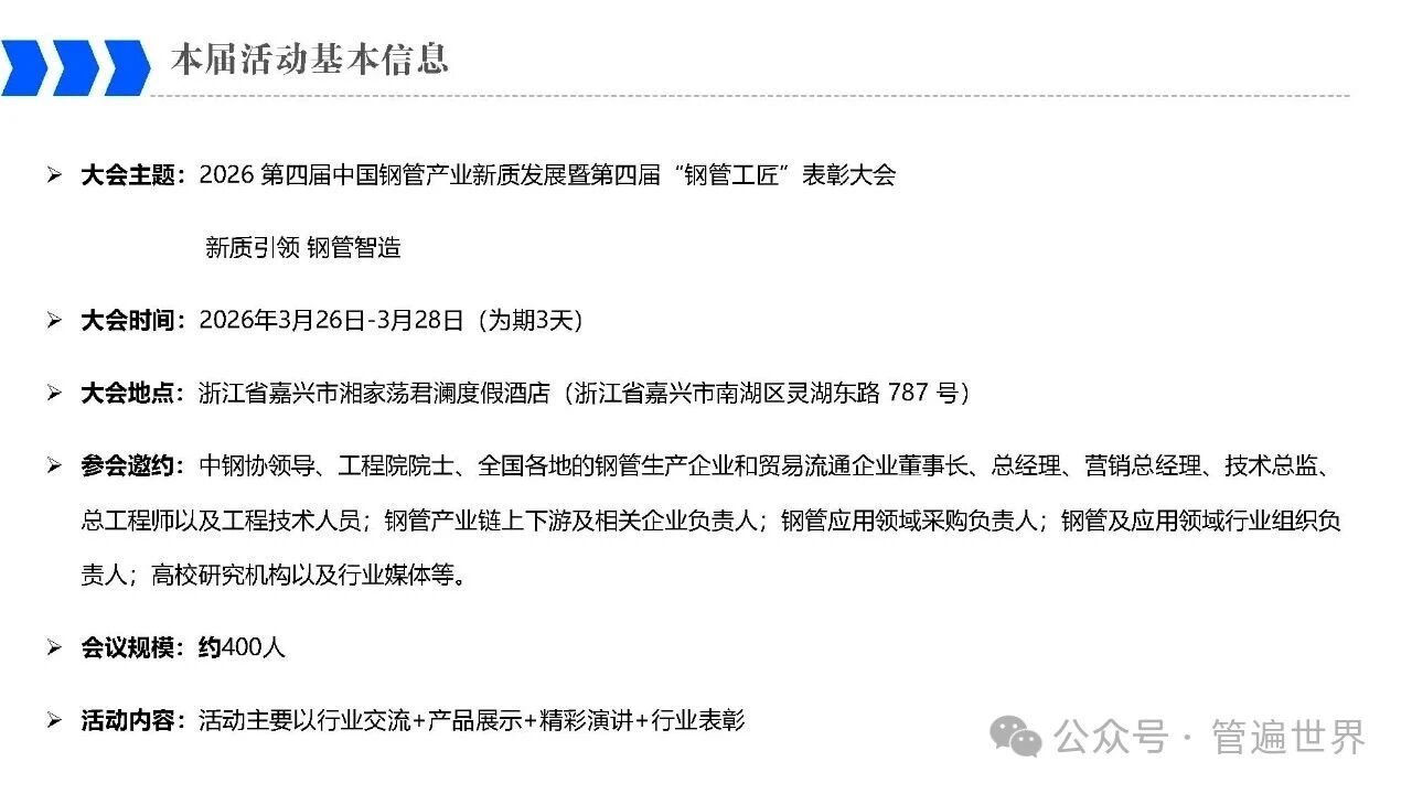您现在的位置是:首页 > 新闻资讯网站首页新闻资讯 2026第四届中国钢管产业新质发展暨第四届“钢管工匠”表彰大会 管理员 2025-12-17 TAG: 无标签 上一篇:深化合作!华滋能源开工建造加拿大AltaGas能源项目海工平台模块 下一篇:已经是最后一篇 相关文章 特别推荐 【火爆出炉】CSSOPE 2025 全球采购对接会排期表 阅读 全球氢能项目大汇总,快来点击索要 阅读 随机推荐 贺!十建公司中韩石化110万吨/年乙烯脱瓶颈改造项目全... 雪佛龙润滑油的中国棋局 2020-06-16 05:45:53 中材国际:签署约3亿美元海外项目经营合同 2022-12-04 18:45:09 沙特阿美与贝莱德财团达成155亿美元天然气管网交易 2021-12-09 09:10:27 沙特基础工业公司、巴斯夫与林德庆祝全球首座大型电加... 2024-04-25 09:26:32 点击排行 科技前瞻:如何构建“油气4.0+”的发展新模式 意大利塞班( SAIPEM)油气项目及采购计划:CSSOPE 为你解读 2019-03-14 15:21:04 集团公司召开2019年HSSE工作视频会议 2019-01-04 18:12:57 石油党员党建信息化平台交纳党费上亿元 2019-01-11 16:33:49 中国石油2022年集中采购招标公告 2022-02-11 20:43:22 标签 会议 中国石化新闻网 中国石油新闻中心 转载 原创 关注我们