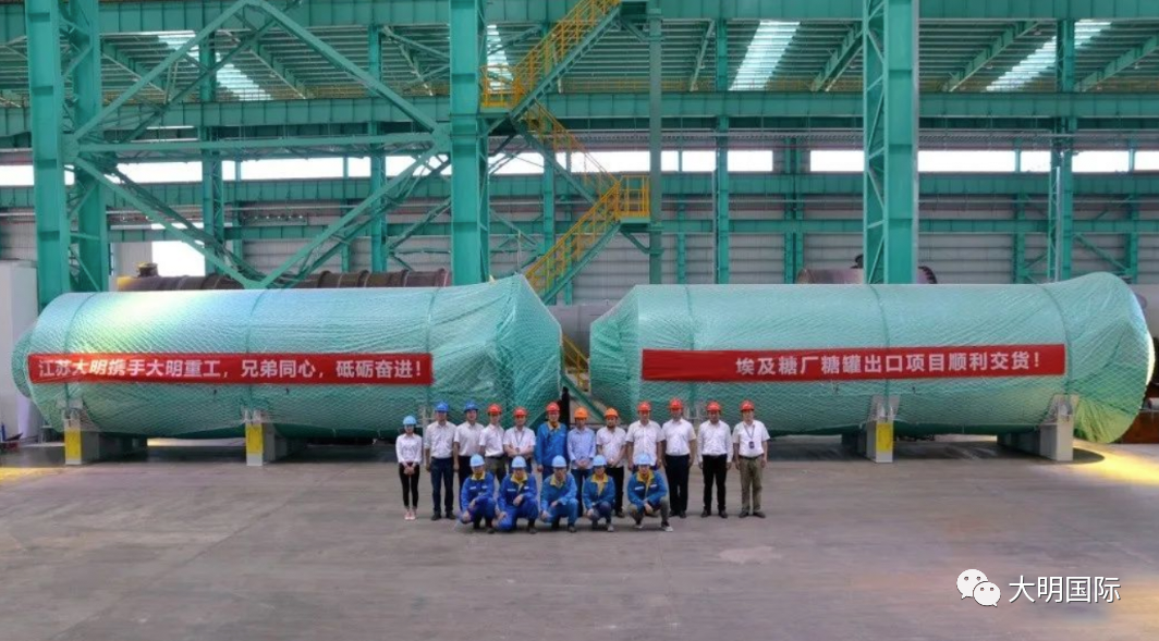 近日,由江苏大明机加工事业部承揽,江苏大明工程服务部联合大明重工容器事业部主体负责生产加工,服务于埃及制糖项目的不锈钢蒸汽冷凝罐正式发货。