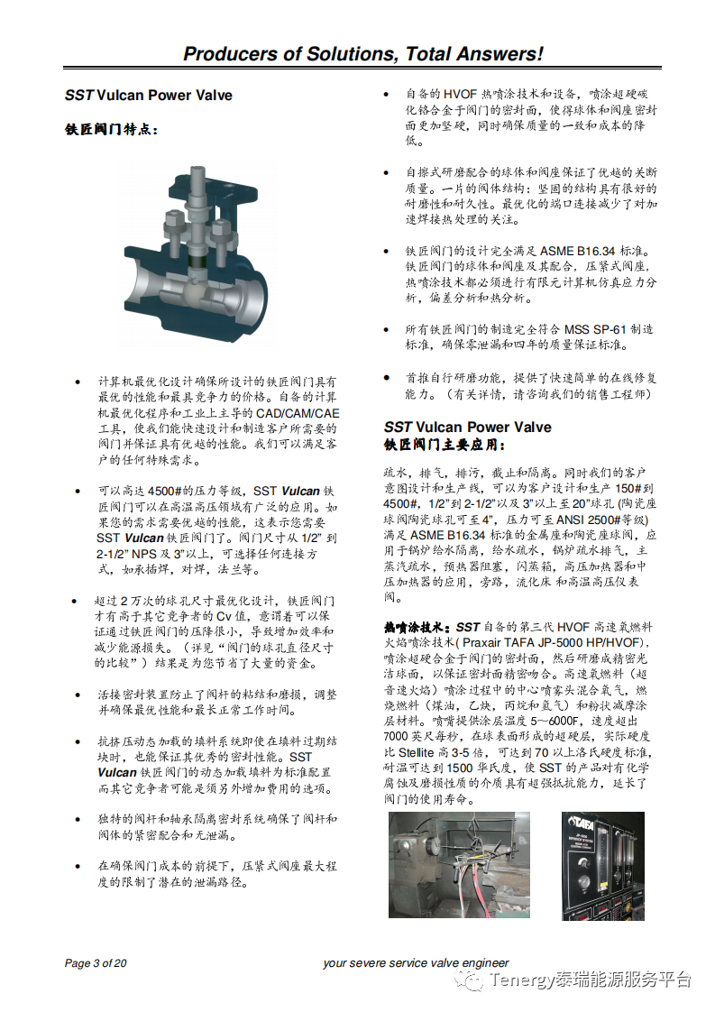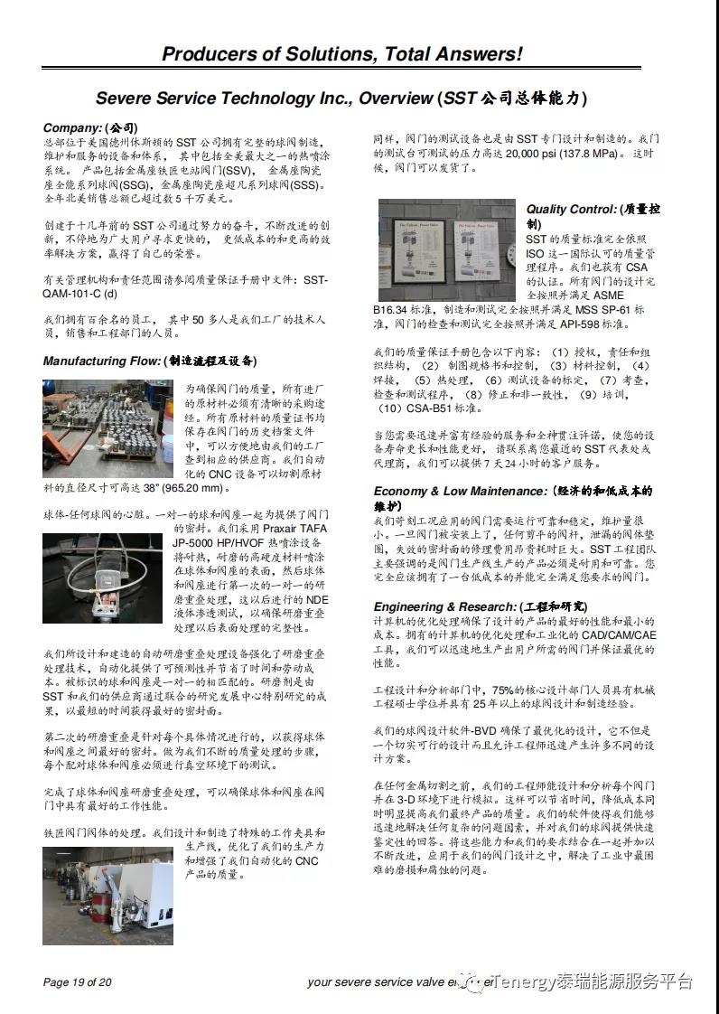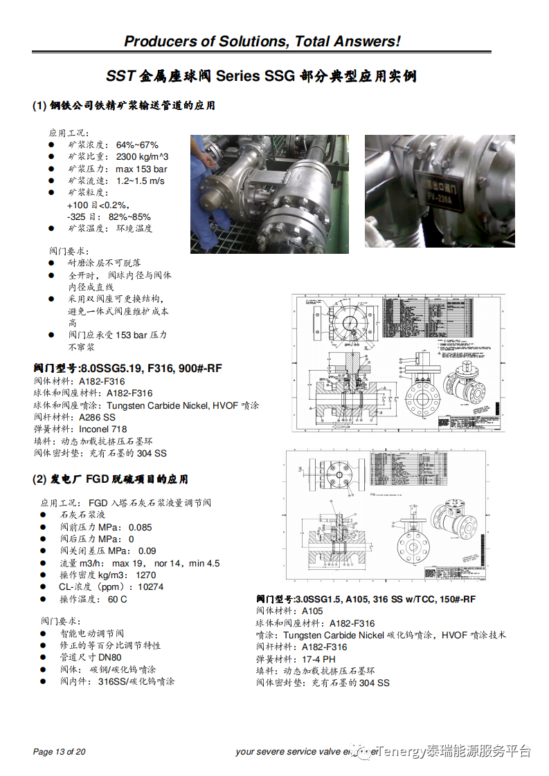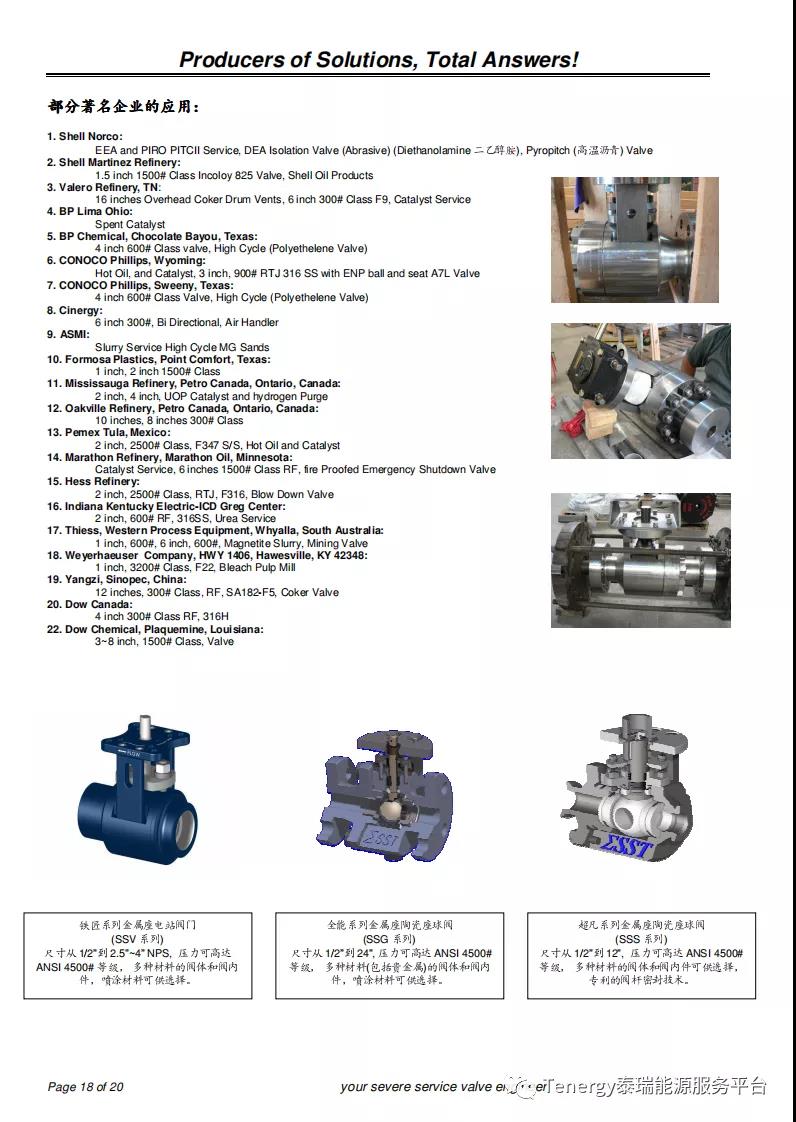 位于美国德州休斯顿的SST公司制造的恶劣工况下的金属座和陶瓷座球阀解决了工业中蒸汽,气体,剧毒气体,石灰浆,煤渣,矿浆,重油等介质的高温高压工况和极端研磨性介质的应用。