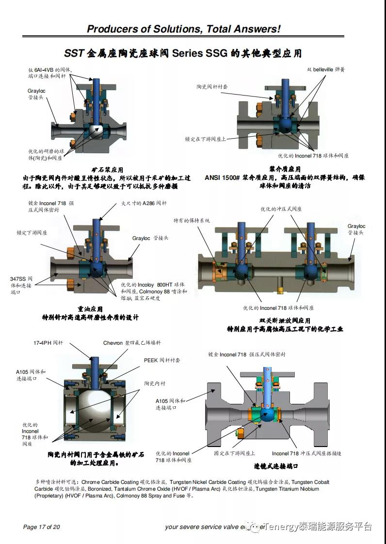 位于美国德州休斯顿的SST公司制造的恶劣工况下的金属座和陶瓷座球阀解决了工业中蒸汽,气体,剧毒气体,石灰浆,煤渣,矿浆,重油等介质的...