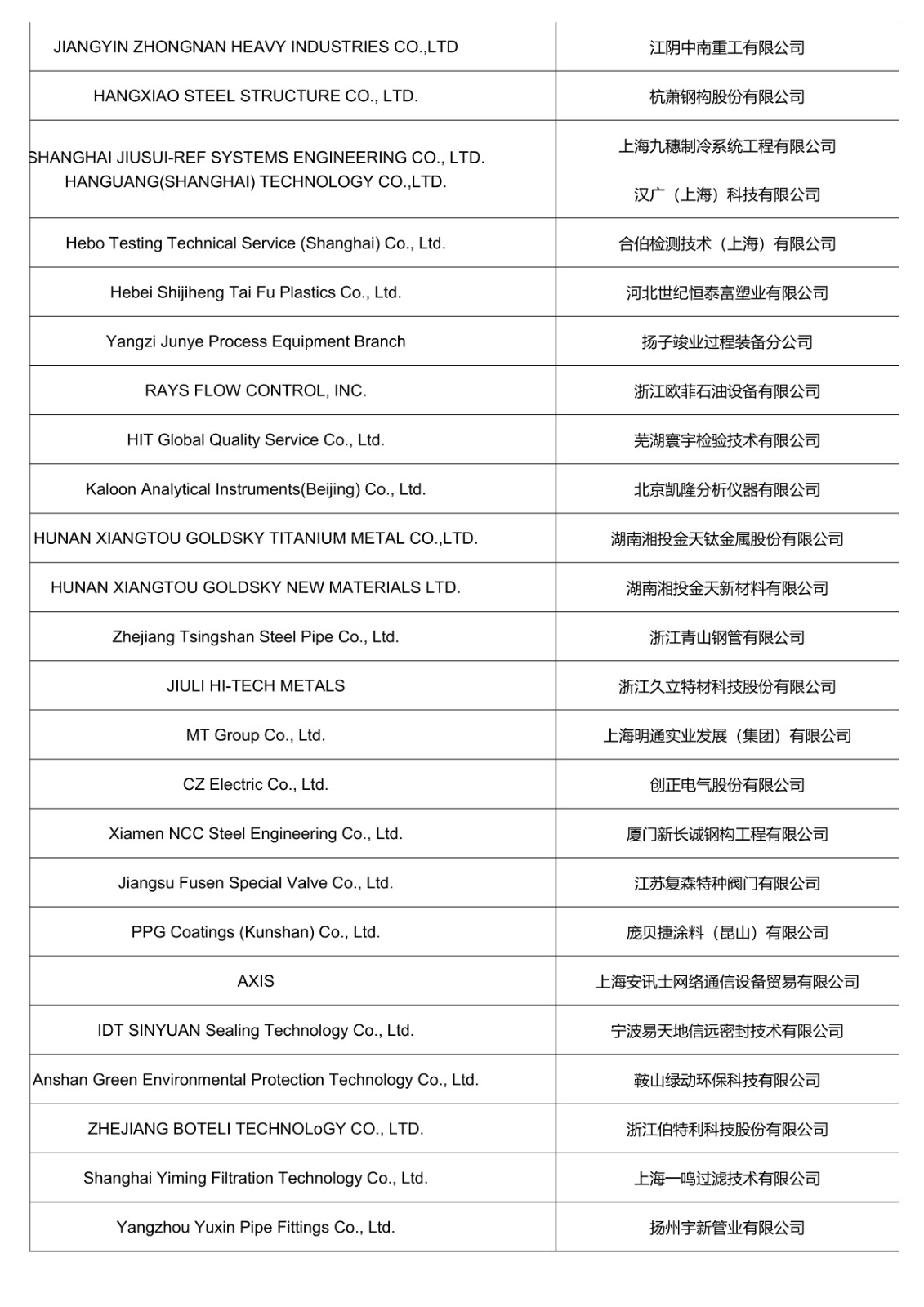 【企业简介:江苏武进不锈股份有限公司,创建于1970年,是国内最大的不锈钢和耐蚀合金无缝管、焊接管、管件和法兰产品制造商之一,是国家重点高新技术企业。无缝管规格为Φ6~Φ914×0.5~88mm,年产能为6.5万吨;焊接管规格为Φ15~Φ2844×0.5~80mm,年产能为5.5万吨;管件和法兰年产能为1万吨。】