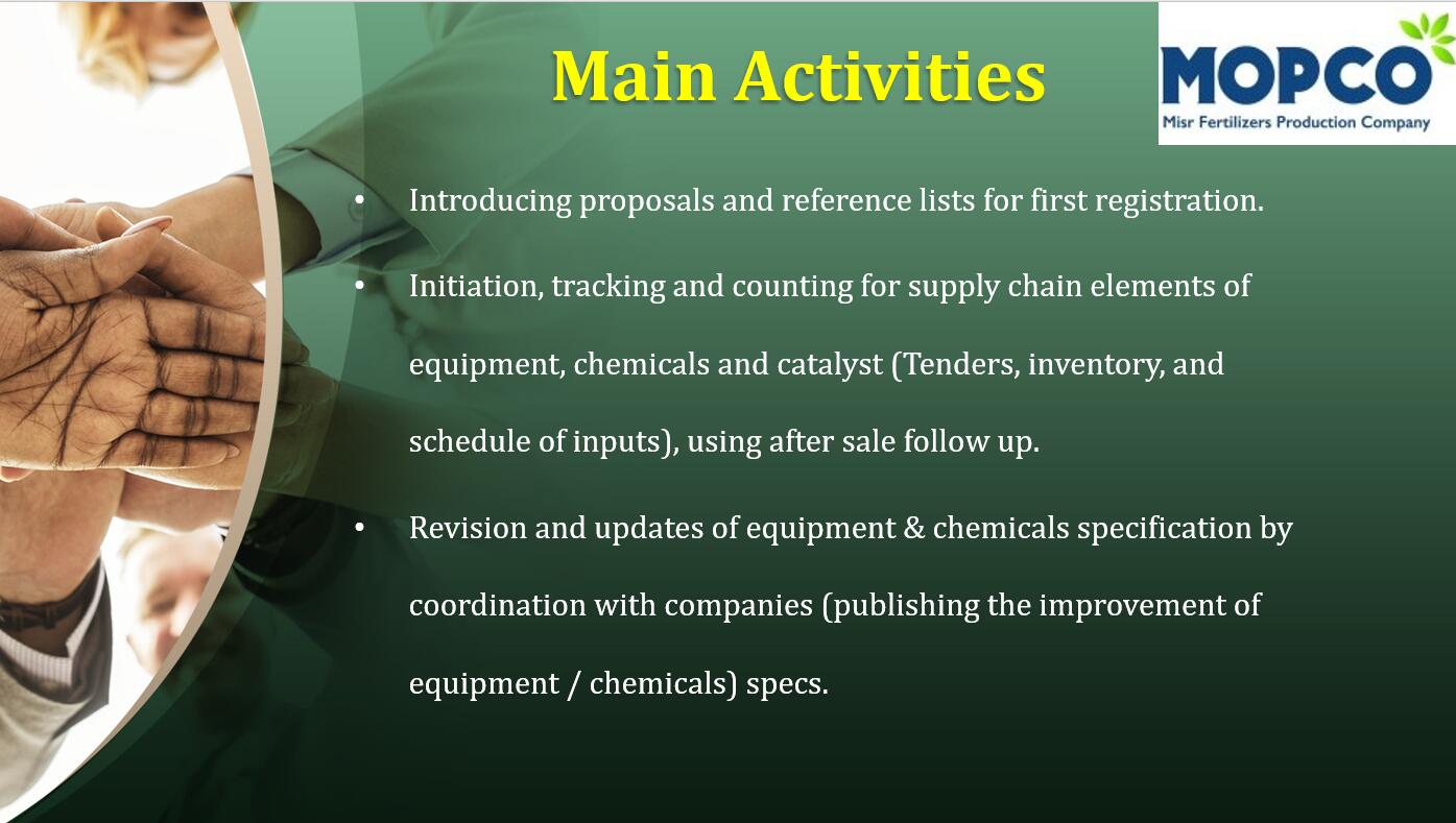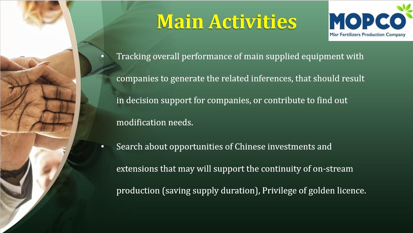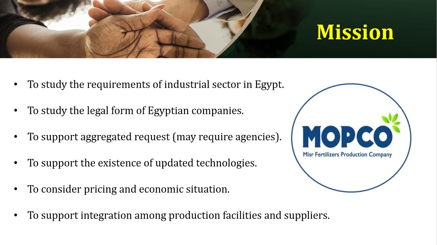 4. 现场指导,直接入网 – 优先办理埃及ENPPI及MOPCO入网, Enppi是埃及最大的EPC总承包商,在石油和天然气,炼油和石化行业的陆上和海上项目方面拥有数十年的经验。埃及石油总公(EGPC)是拥有Enppi总股份97%的主要股东。埃及最大化肥厂——即MISR石油加工公司/Misr化肥生产公司-氮肥生产 (目前更名为MOPCO)。