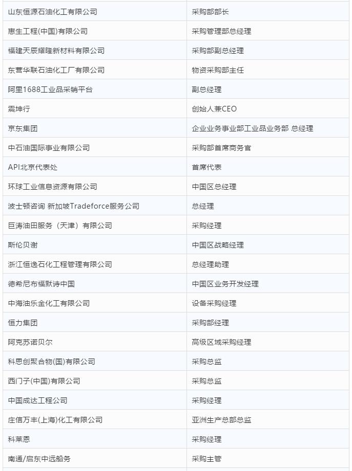第十一届中国石油化工装备采购国际峰会暨展览会(CSSOPE 2021)采购嘉宾名单: